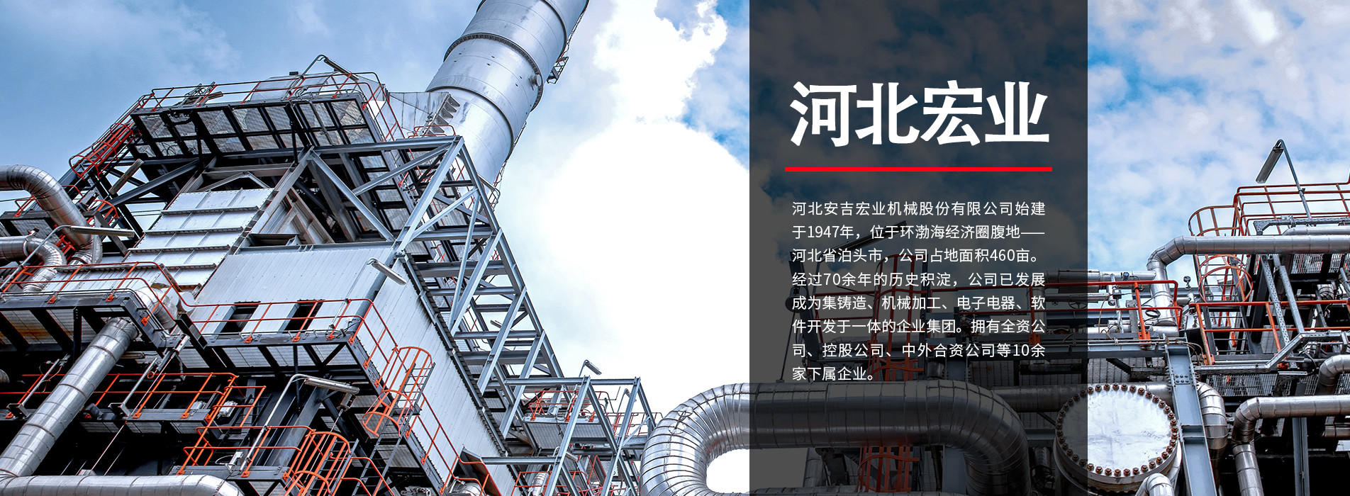 河北安吉宏業機械股份有限公司始建于1947年,位于環渤海經濟圈腹地---河北省泊頭市,公司占地面積460畝。經過70余年的歷史積淀,公司已發展成為集鑄造、機械加工、電子電器、軟件開發于一體的大型企業集團。擁有全資公司、控股公司、中外合資公司等10余家下屬企業。擁有一家省級技術研究中心,并在上海、天津、滄州設立了三個研發中心。擁有一支包括教授級高級工程師、博士、碩士、本科生在內的多學科、專業齊全的機電結合型技術團隊?,F有產品涉及汽車零部件、流體機械、精加工鑄造領域。